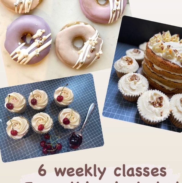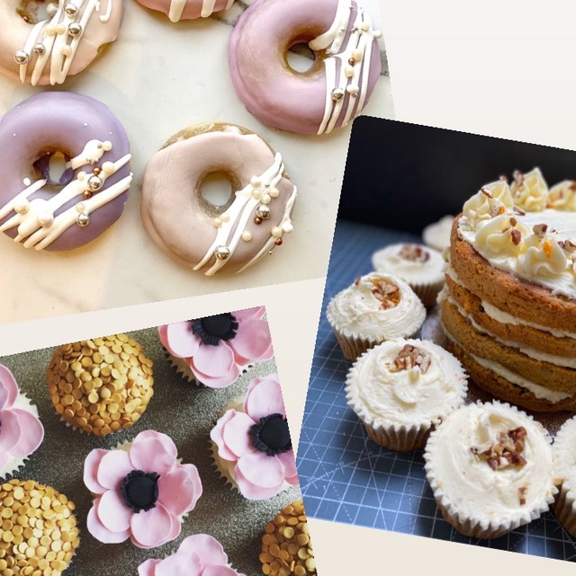 Cupcakes, layer cakes, macarons, baked donuts and cookies
